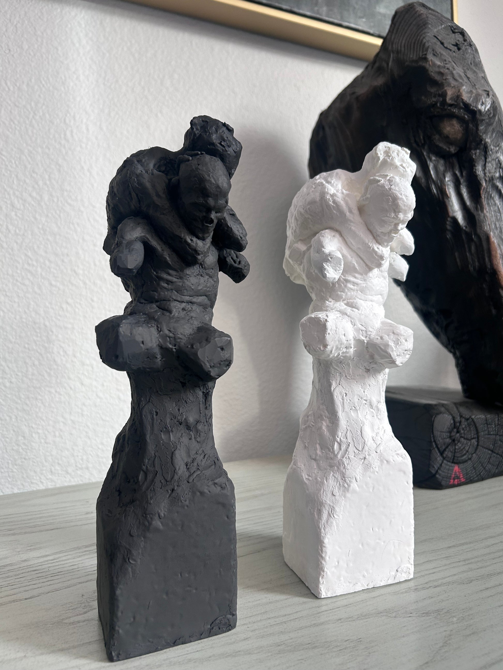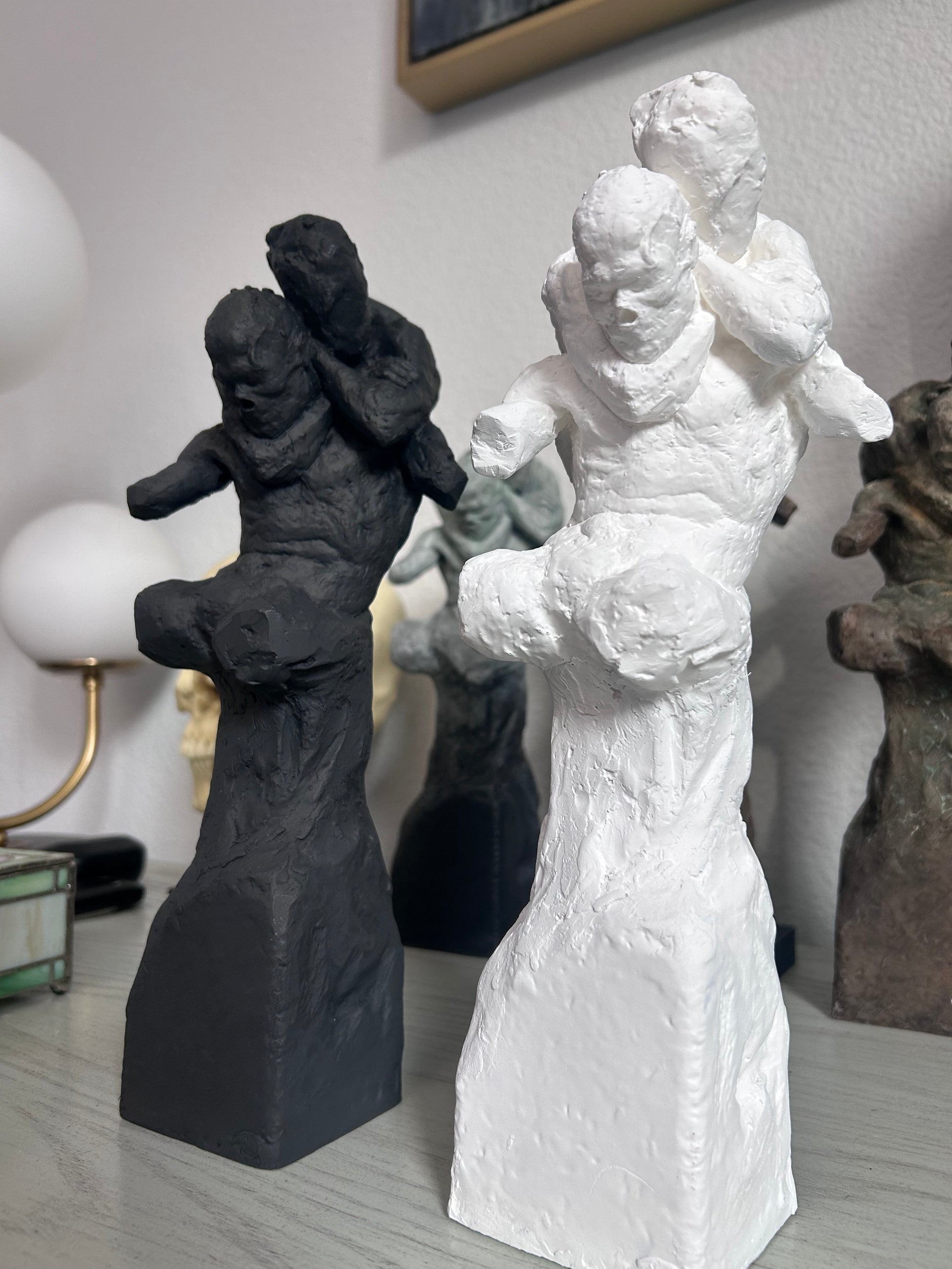 I sculpted this from clay and called it “Holy Isle”. They’re cast in resin then painted with a base coat of white or charcoal, using chalk finish paints.